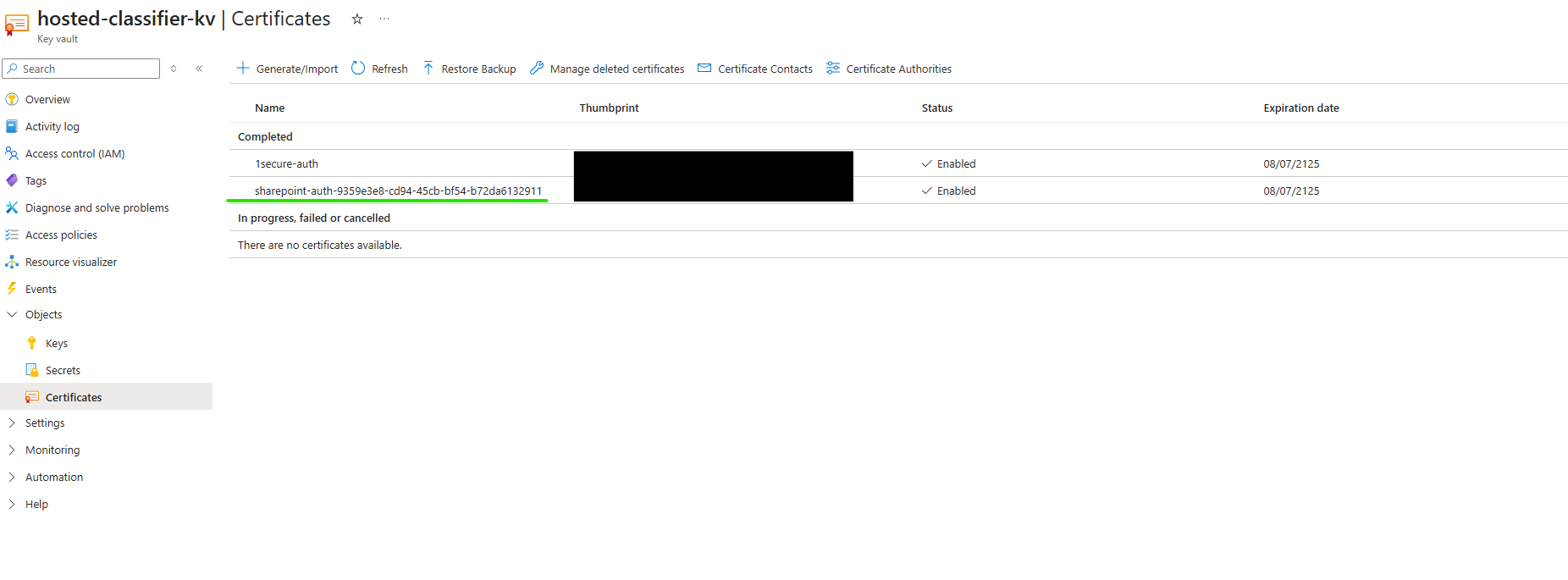 - Click on "sharepoint-auth-{Guid}"